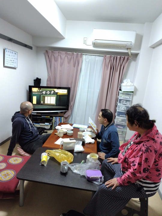 日中の出来事をみんなでお喋りしたり、テレビを見たり、ボードをしたりします。